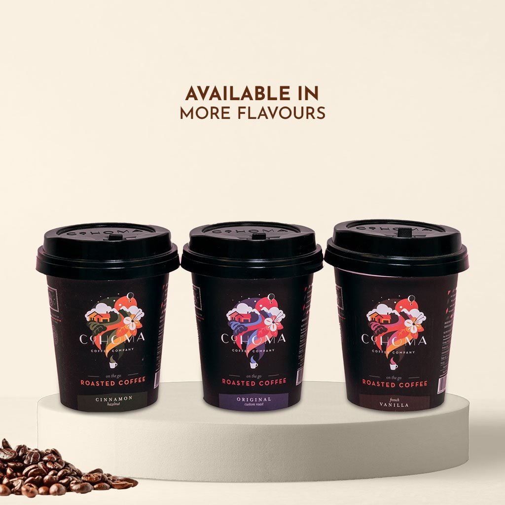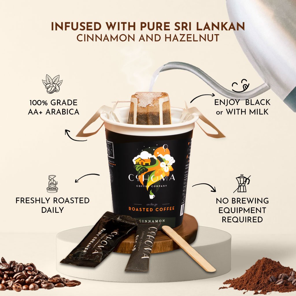Love the Cinnamon Hazelnut Coffee. The Can and cups with filter are so convenient to use and its been so easy for me to instantly make a cup of coffee while i am trekking. All you need is just hot water in a flask with Cohoma